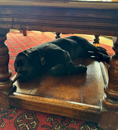 Arthur’s tail never stops wagging, he is always happy, yet he is very calm and sensible and you could take him anywhere.