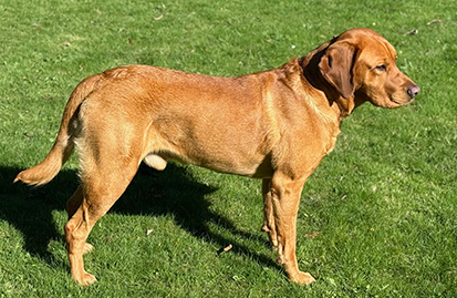 Kato Hip Score: 0:0 Elbow Score: 0:0 Clear Annual Eye Test (12/07/2025) Progressive Retinal Atrophy (prcd- PRA) Hereditary Clear & Tested Clear Centronuclear Myopathy (CNM) Hereditarily Clear & Tested Clear Exercise Induced Collapse (EIC) Hereditarily Clear & Tested Clear Dwarfism/Skeletal Dysplasia 2 (SD2) Hereditarily Clear & Tested Clear Hereditary Nasal Parakeratosis (HNPK) Hereditary Clear & Tested Clear Degenerative Myelopathy (DM Exon2) Tested Clear Cystinuria (CY) Tested Clear Hyperuricosuria (HUU) Tested Clear Pyruvate Kinase Deficiency (PKD) Tested Clear Stargardt (STGD) Tested Clear Macular Corneal Dystrophy (MCD) Tested Clear Congenital Myasthenic Syndrome (CMS) Tested Clear Copper Toxicosis (CT) Tested Clear Kato (rhymes with potato) is an absolutely gorgeous dog, as well as being extremely handsome (just like his Dad) he has the most lovely temperament and cannot greet anyone unless he has something in his mouth! He is incredibly clever, impeccably obedient and super calm, he was even calm as a puppy. His usual expression is one of deep thought, he appears wise and it is almost as if he has been here before! He has just started gun dog training and is a natural, loving nothing more than hunting in cover for his dummies, and he loves water. Kato has been referred to by strangers who stop us on our walks as ‘drop dead gorgeous’, ‘stunning’, and one said “If Calvin Klein used dog models, they would use your dog!” As well as being ‘hereditarily clear’ for the five disorders above Kato has also been DNA tested for all the disorders which can affect Labradors. Kato ‘Tested clear’ for CM, CMS, CT, CY, DM, EIC, HNPK, HUU, MCD, PKD, PRA-prcd, SD2 and STGT and the Genetic Testing Report can be seen by clicking on the wording ‘view my DNA tests’ by the rosettes at the bottom of this page.